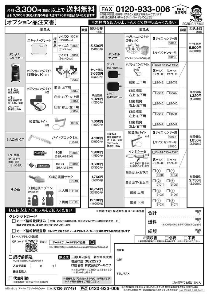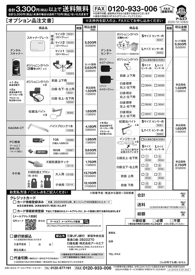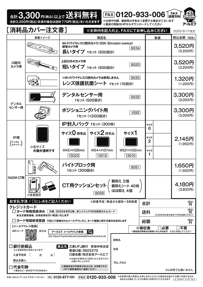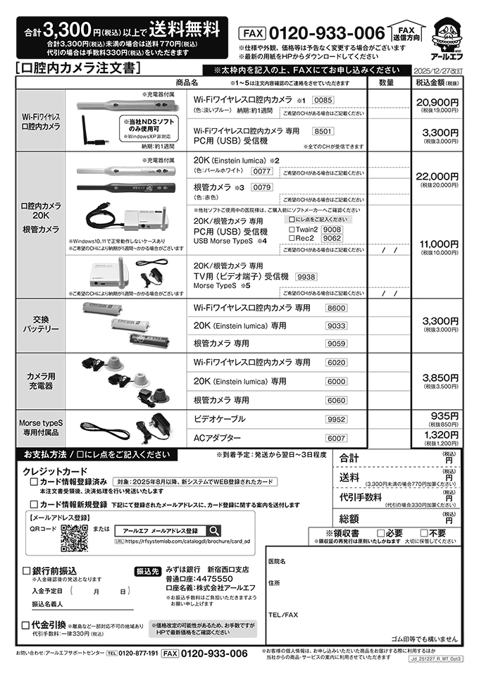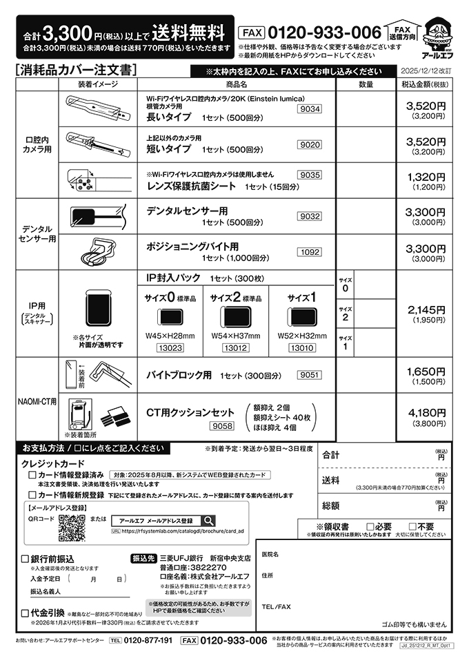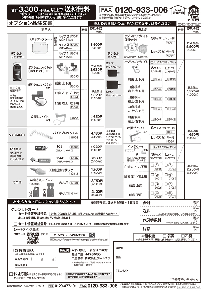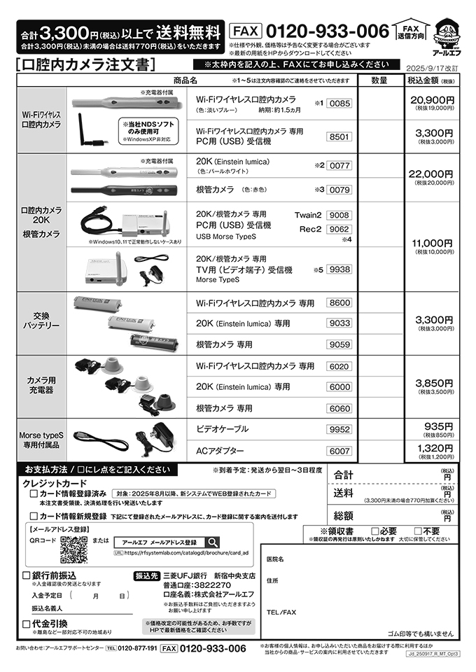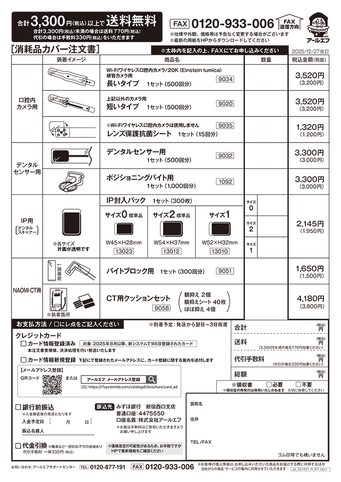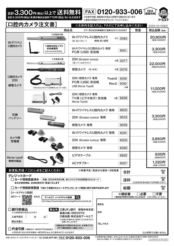 ※ 消耗品・オプション品・口腔内カメラの注文は